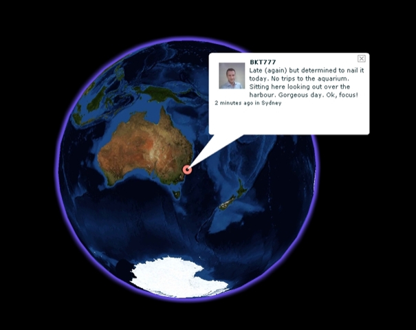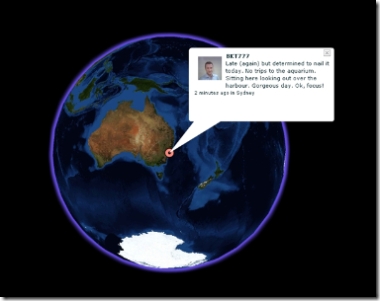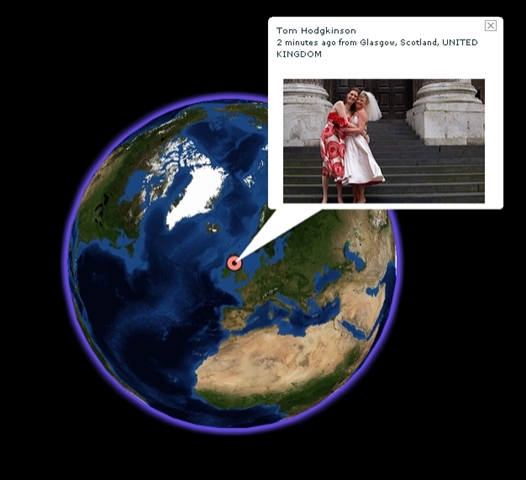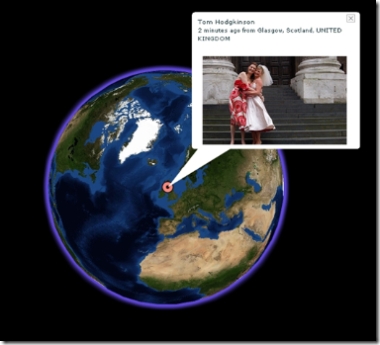 Watching these globes spin, each showing a fragment of life around the world, is incredibly engaging. This is the user-driven web at its most visually enticing. I have to say, were I in charge of a Communications Studies or Media Studies department (which I’m not) and I could find a couple of spare monitors and computers (which, in all fairness, departments probably couldn’t), then I’d leave these running 24/7 in the front foyer; the best advertisement for the studying the user-driven web is watching it happen in all its visual glory, right in front of you!