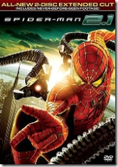 Having dedicated the final chapter of my doctoral thesis to examining the first two Spider-Man films as an exemplar of Artificial Culture, I really had to buy and watch the new Spider-Man 2.1 DVD, despite my constant annoyance at how these just-before-the-sequel extended edition DVD releases tend to disappoint. The 2.1 DVD set is advertised as having a new ‘Extended Cut’ of Spider-Man 2 with eight minutes new footage, while the second disc sports a bunch of ‘all-knew’ features. Sadly, the features on the extras DVD really don’t justify the creation of an disc. The ‘sneak peak’ and trailer for Spider-Man 3 don’t show anything not already floating around the legitimate parts of the internet, while the ‘VFX Breakdown’ is quite a laborious walk-through of the meshing of live-action, miniature and digital effects. I guess it’s hard to make these technical mini-docos all that interesting, but the Lord of the Rings DVDs did show it’s possible! I have the feeling VFX piece was shot for the original Spider-Man 2 DVD but cut since they’re just really dull.
