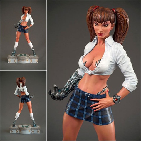 A few months ago I wrote about my disappointment with a statuette of Mary-Jane Watson from the Spider-Man comics which showed her basically washing Peter Parker’s Spider-Suit whilst standing in an overly provocative pose. There was substantial community dismay at this overtly objectifying piece (especially since MJ has, at times, been one of the stronger women in the Spider-Man franchise). It seems this dismay has had little sway, evinced by this new “limited-edition Witchblade Schoolgirl” piece hitting the shelves: