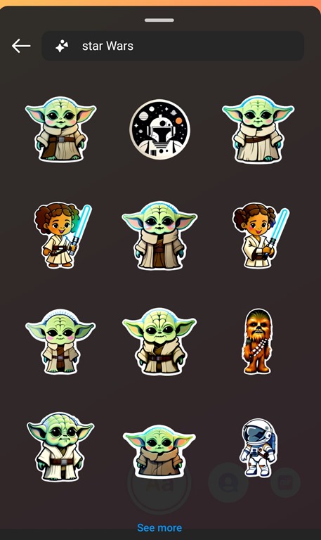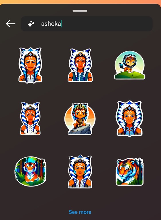 And while it might be argued that generative AI are never that good with specific contexts, trawling through US popular culture queries showed Meta’s AI tools can give incredibly accurate stickers if you’re asking for Iron Man, Star Wars or even just Ahsoka (even when the query is incorrectly spelt ‘ashoka’!).