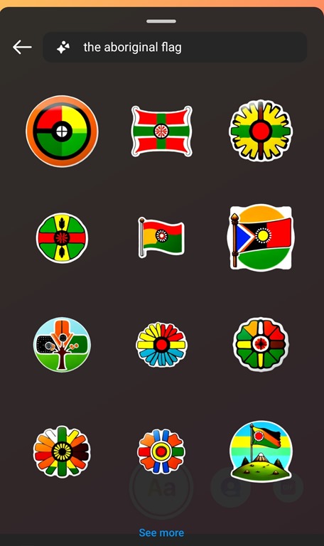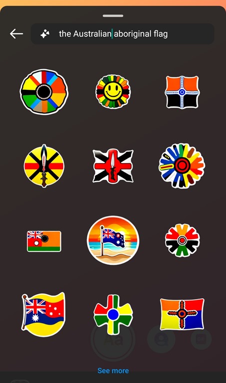 More problematically, a search for ‘the Aboriginal flag’ (keeping in mind I’m searching from within Australia and Instagram would know that) produced some weird amalgam of hundreds of flags, none of which directly related to the Aboriginal Flag in Australia. Trying ‘the Australian Aboriginal flag’ only made matters worse, with more union jacks and what I’m guessing are supposed to be the tips of arrows. At a time when one of the biggest political issues in Australia is the upcoming referendum on the Aboriginal and Torres Strait Islander Voice, this complete lack of contextual awareness shows that Meta’s AI tools are incredibly US-centric at this time.