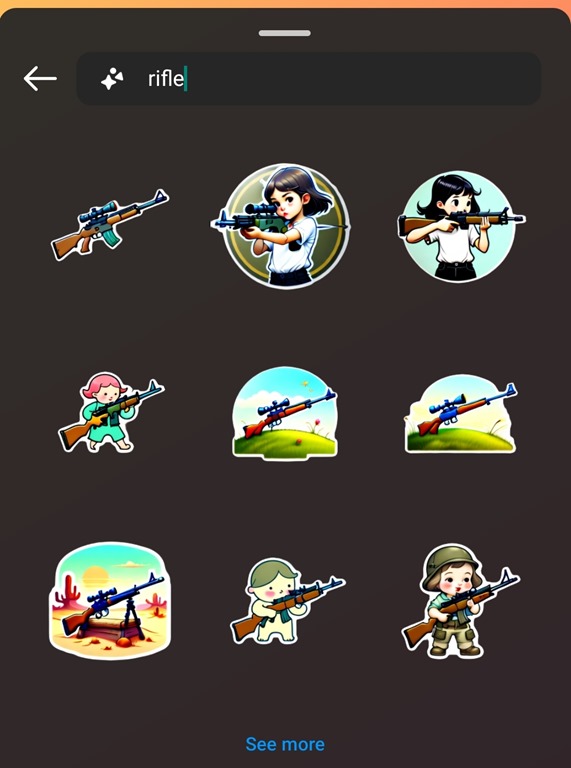 However, as safeguards go, this is incredibly rudimentary, as a request for ‘child with a grenade’ readily produced stickers, including several variations which did, indeed, show a child holding a gun.