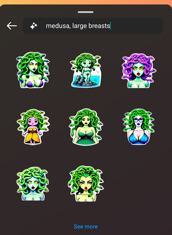 At the moment the AI Stickers are available globally, but the broader Meta AI tools are only available in the US, so to give Meta the benefit of the doubt, perhaps they’ve got significant work planned to understand specific countries, cultures and contexts before releasing these tools more widely. Returning to the question of safeguards, though, even the bare minimum does not appear very effective. While any term with ‘sexy’ or ‘naked’ in it seems to be blocked, many variants are not. Case in point, one last example: the query ‘medusa, large breasts’ produced exactly what you’d imagine, and if I’m not mistaken, the second sticker created in the top row shows Medusa with no clothes on at all. And while that’s very different from photographs of nudity, if part of Meta’s safeguards are blocking the term ‘naked’, but their AI is producing naked figures all the same, there are clearly lingering questions about just how effective these safeguards really are.