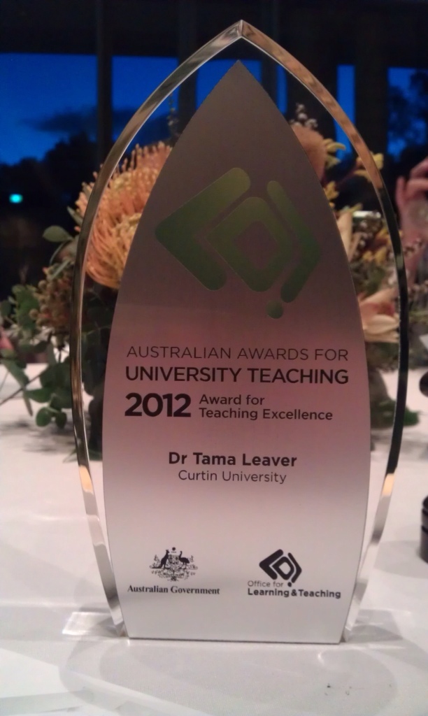 At an amazing ceremony and dinner at the National Gallery in Canberra tonight I was surprised, flattered and delighted to receive an Australian Award for University Teaching in the Humanities and Arts. This is a huge honour, and I’m extremely grateful to have my approaches to learning and teaching acknowledged in this manner. That said, I’m incredibly conscious that no one teaches in a vacuum, and in Internet Communications I am but one cog in a very complex and well-maintained machine, so this award is at least as much testimony to all of our team at Curtin University as it is to me.