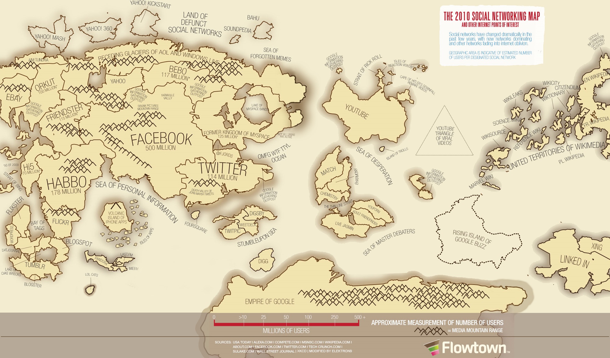 A great 2010 update from Flowtown‘s Ethan Bloch of the (in)famous XKCD Map of Online Communities.